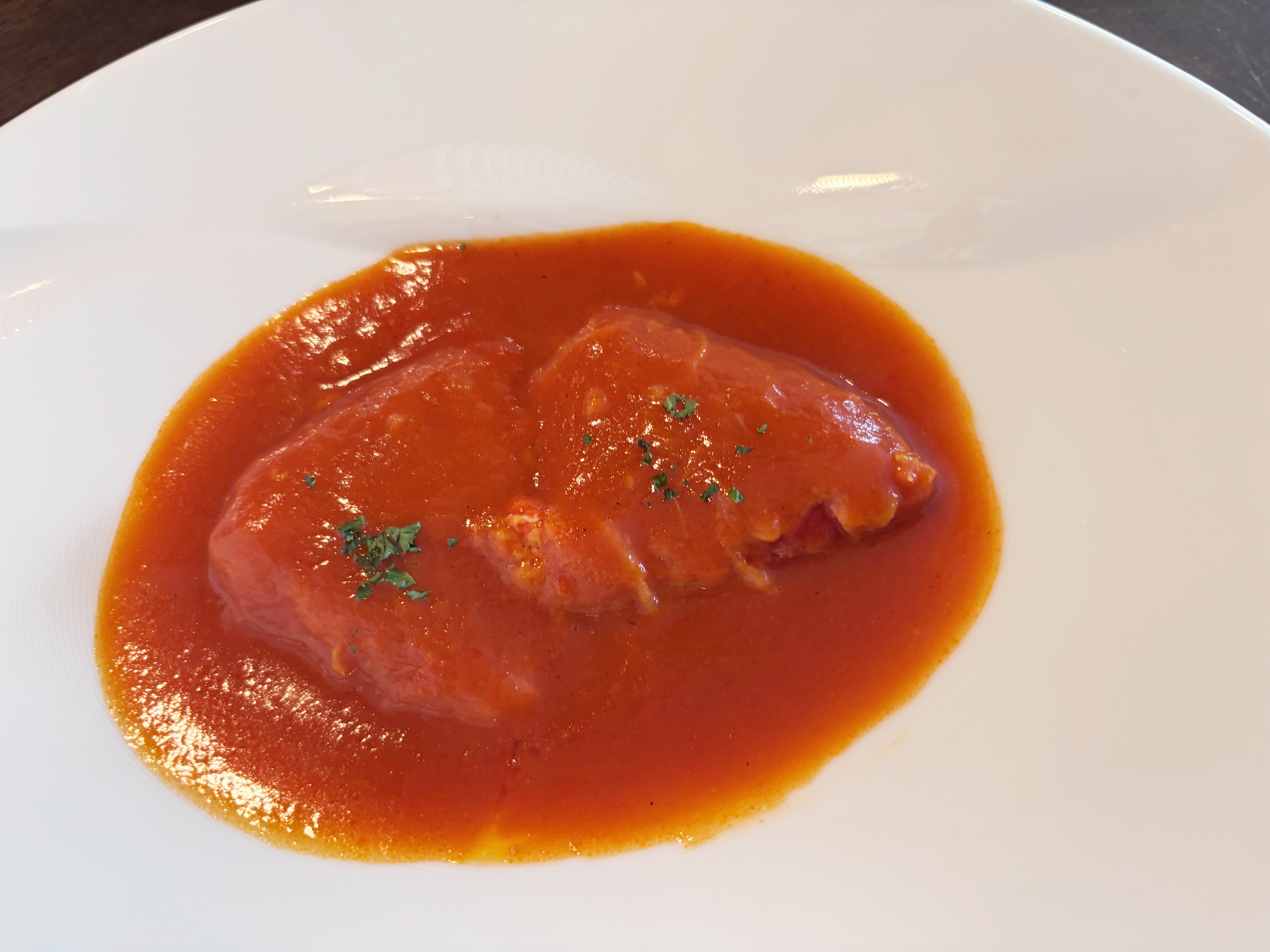 ¥3,800 (税込¥4,180)ピキージョ種赤ピーマンのカニ詰め