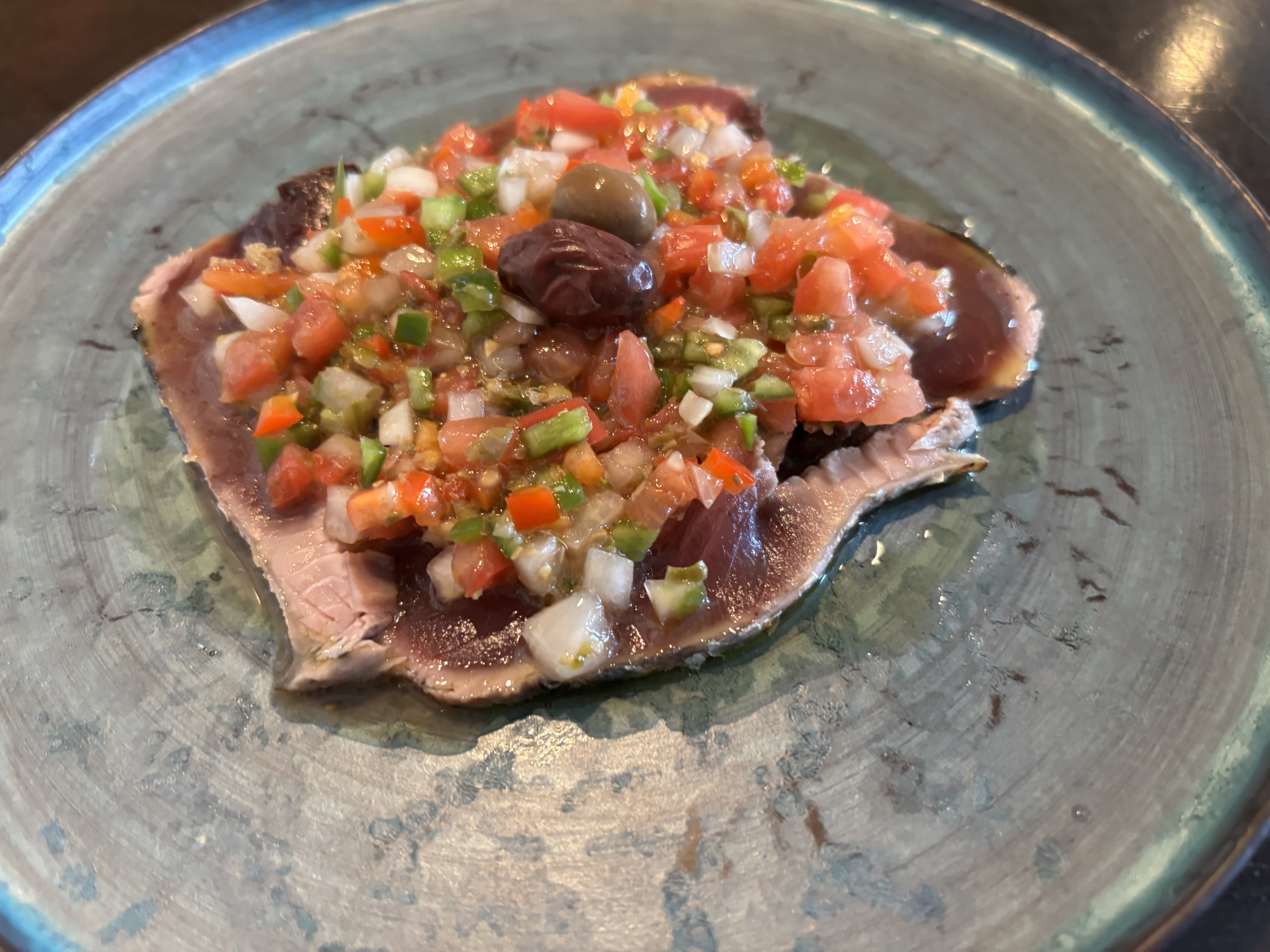 (ハモン・セラーノ、焼き野菜の冷製サラダ、マッシュルームのガーリック煮、タコのガリシア風)